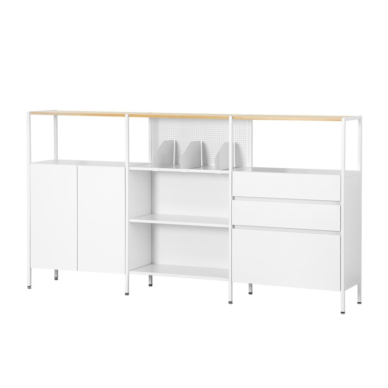 Эта система хранения спроектирована на основе модульной конфигурации, которая позволяет свободно комбинировать двери, открытые полки или выдвижные ящики в пределах одной структурной конструкции. Каждый модуль соответствует стандартизированным параметрам ширины и глубины, что обеспечивает единообразное выравнивание при размещении модулей рядом. С точки зрения функциональных данных модульные системы повышают эффективность использования пространства примерно на 20–30 процентов по сравнению с системами хранения с фиксированной компоновкой, поскольку пользователи могут адаптировать комбинацию к реальным потребностям хранения. Эта гибкость поддерживает как горизонтальное расширение, так и внутреннюю реконфигурацию с течением времени. Для пользователей модульная концепция означает, что хранилище может развиваться по мере изменения образа жизни или режима работы без замены всей структуры. Эта адаптируемость особенно ценна в приложениях для домашнего хранения, позволяя устройству функционировать как металлический шкаф в одной конфигурации и переходить в открытые стеллажи или шкафы для хранения документов по мере изменения требований.